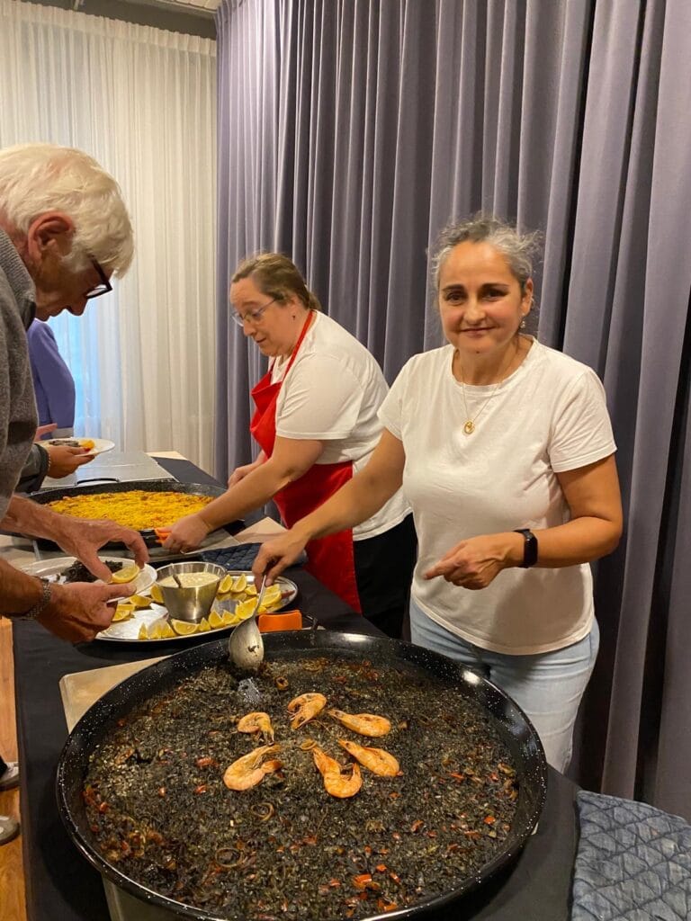 43 gasten hebben gesmuld van de Spaanse maaltijd gekookt door Marta en Maria en de vrijwilligers van Lekker Anders.