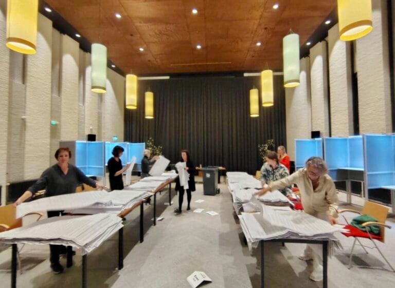 De foto’s geven een impressie van het tellen van de stemmen in het Dorpscentrum.
